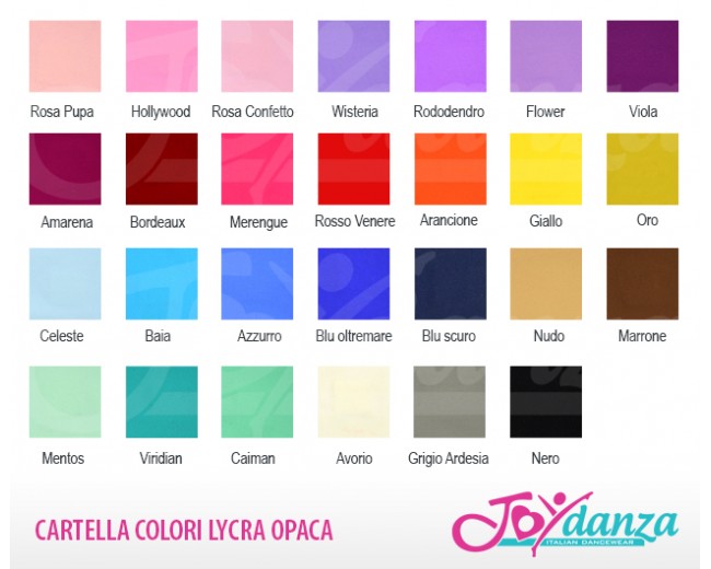 Le cartelle colori per l'abbinamento in foto sono le seguenti: